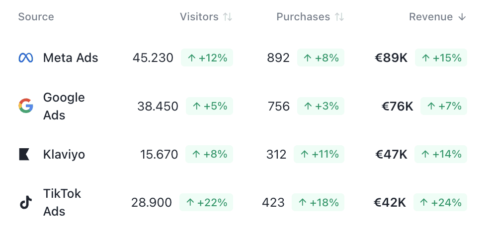 Centraliza el rendimiento de Meta, Google y TikTok en un solo lugar